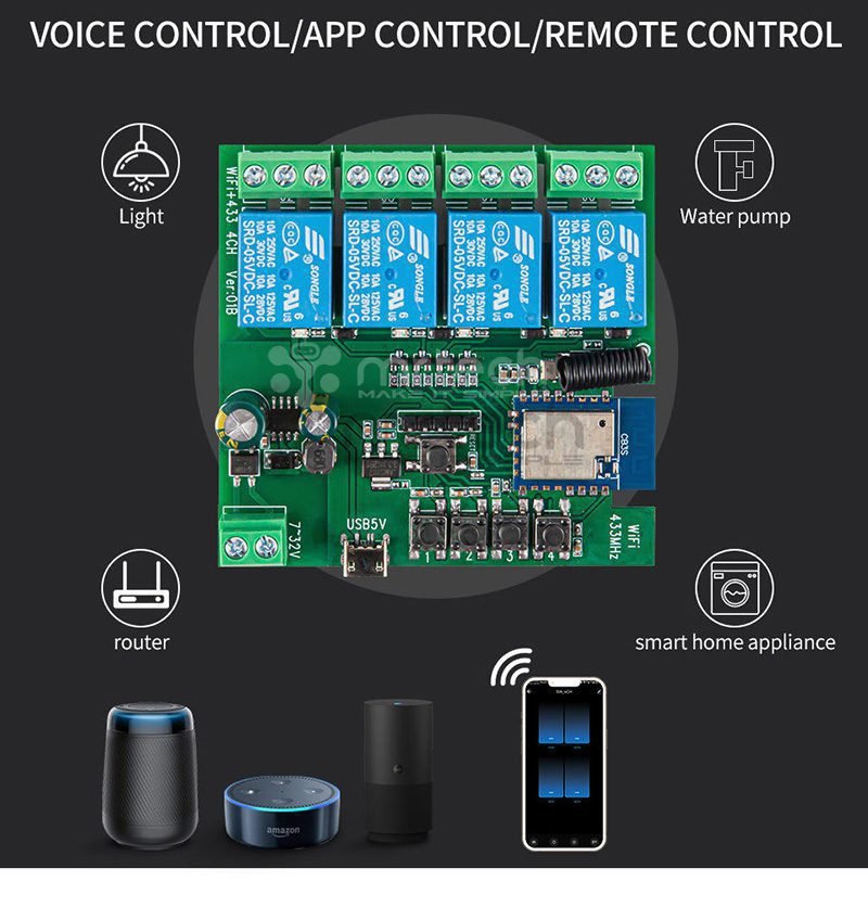 Wifi+Ble with RF Module 4CH Relay Work With Alexa Google Home